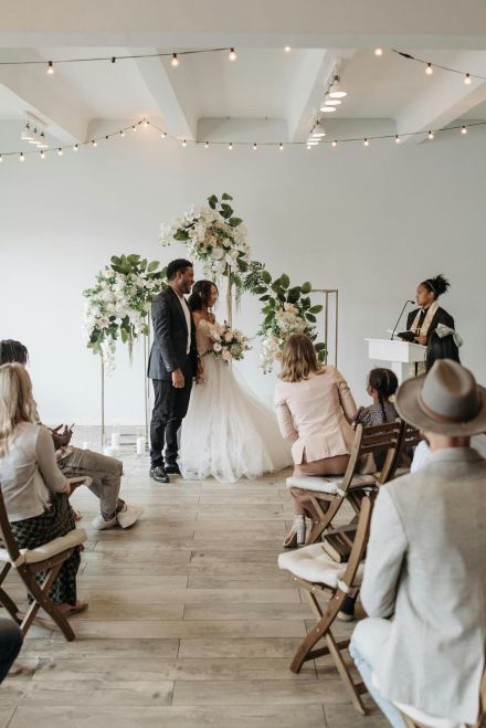 - Ceremony arch decor with florals or draping.