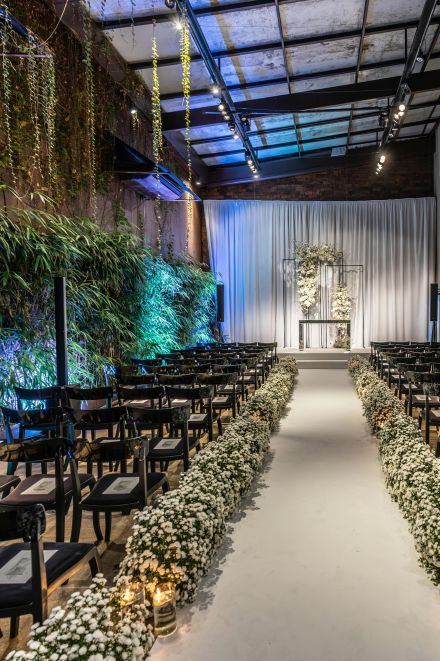 - Aisle decor up to 10 rows with florals and pillar candles.